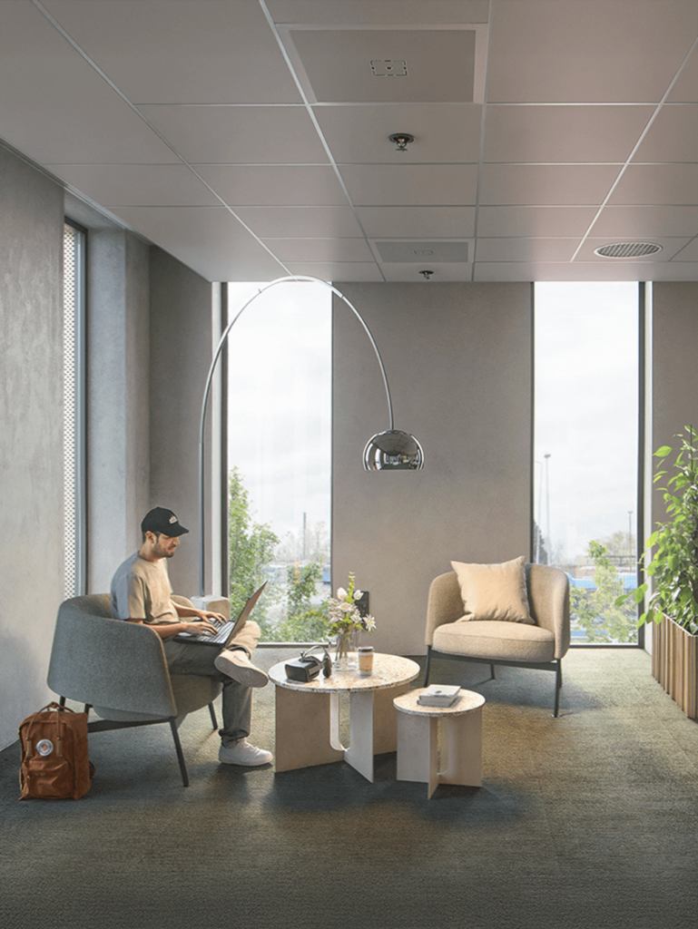 Noden är utformad efter företagens behov, med flexibla kontorsytor som kan anpassas helt efter verksamhetens önskemål – från mindre arbetsplatser till hela våningsplan. Entréplanet är husets hjärta, en öppen och tillgänglig yta för både hyresgäster och besökare som rymmer upp till 150 personer med sittplatser i olika nivåer. Här kan man arrangera mingel, evenemang och möten, samtidigt som ljusgården fungerar som en naturlig mötesplats där studenter och forskare möts med entreprenörer, utvecklare och kreatörer för inspiration och idéutbyte.